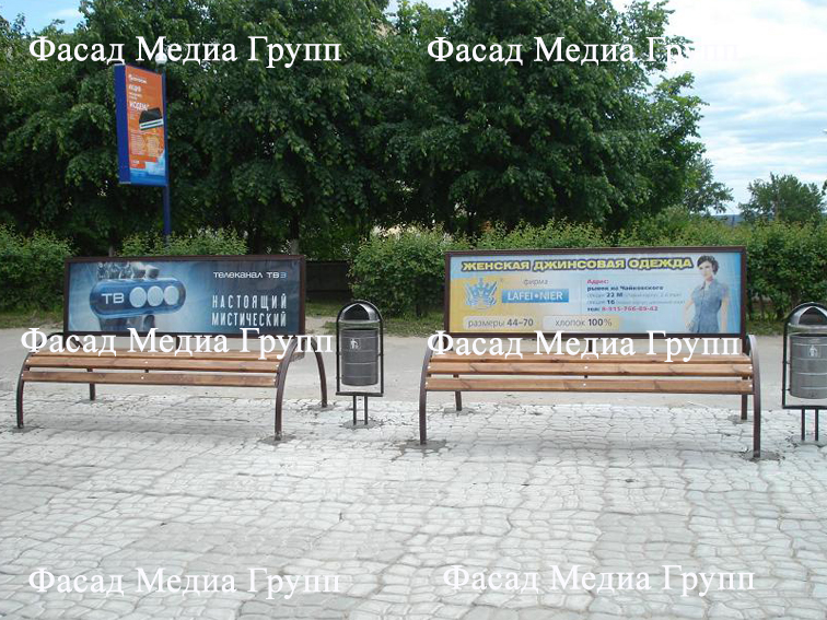 Уважаемые друзья! Для размещения рекламы на скамейках обращайтесь в рекламное агентство «Фасад Медиа Групп». Высокий уровень сервиса и низкие цены гарантируем. Мы все сделаем сами: дизайн и печать макета, монтаж и демонтаж. Фотоотчёт предоставляем бесплатно и в 100% объеме.
